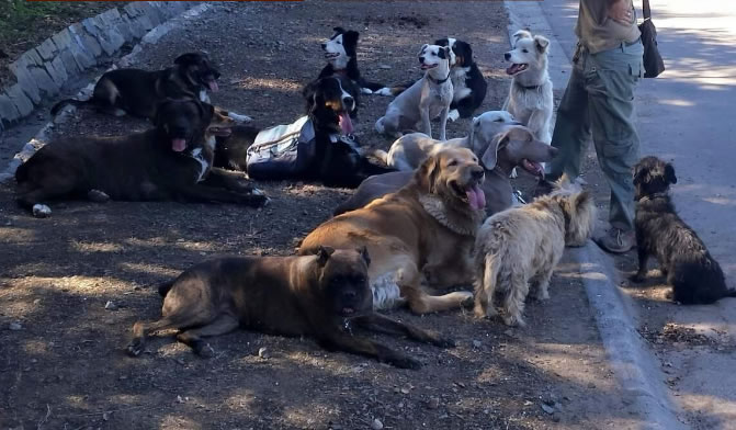 Paseos mínimo de dos horas en manada. Les permite correr, jugar, oler, ser felices con sus pares.